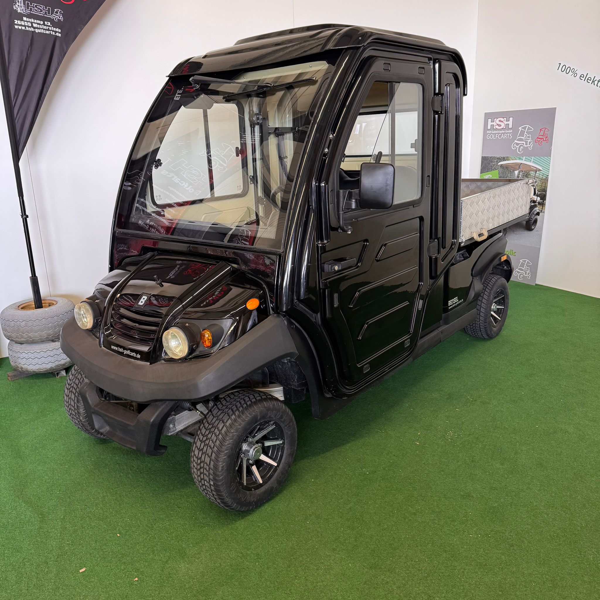 Sofort verfügbar, Farbe schwarz, neue Batterien, Ladegerät, Lichtanlage, Alu Ladefläche 1120x 1200x 266mm klappbar, Frontscheibe klappbar, kräftiger 3,7PS Motor, Alu Chassis