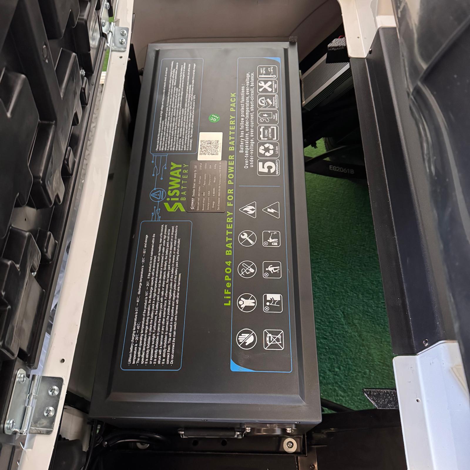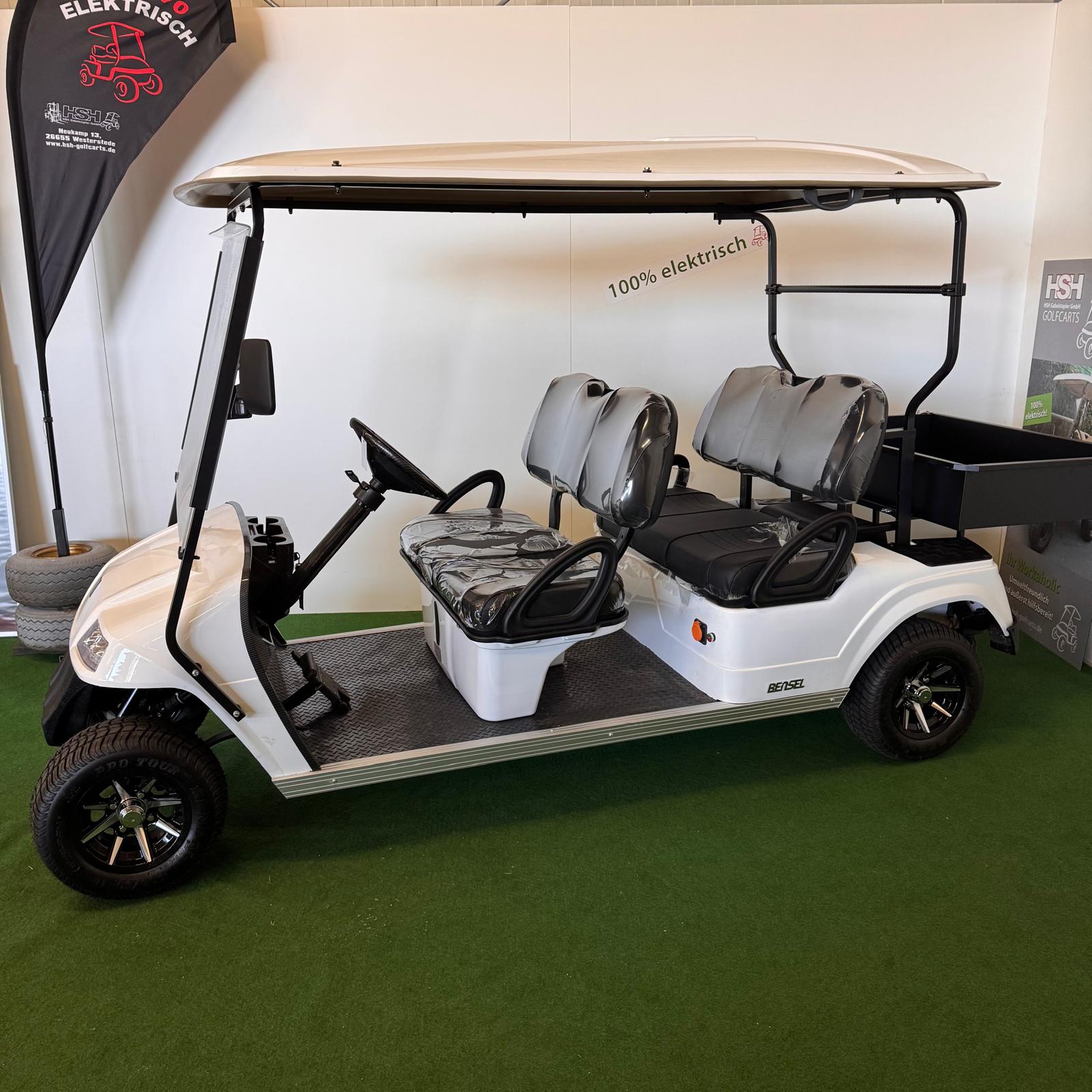 Sofort verfügbar, 105 AH Lithium Akku, Ladegerät eingebaut, 2 Golftaschenhalter, COC Papiere für L6e Zulassung, Beleuchtungsanlage, Aussenspiegel, feste Frontscheibe mit Wischer, 10 Zoll Alufelgen, 4,3 KW Motor, gegen Aufpreis auch mit Ladefläche möglich.