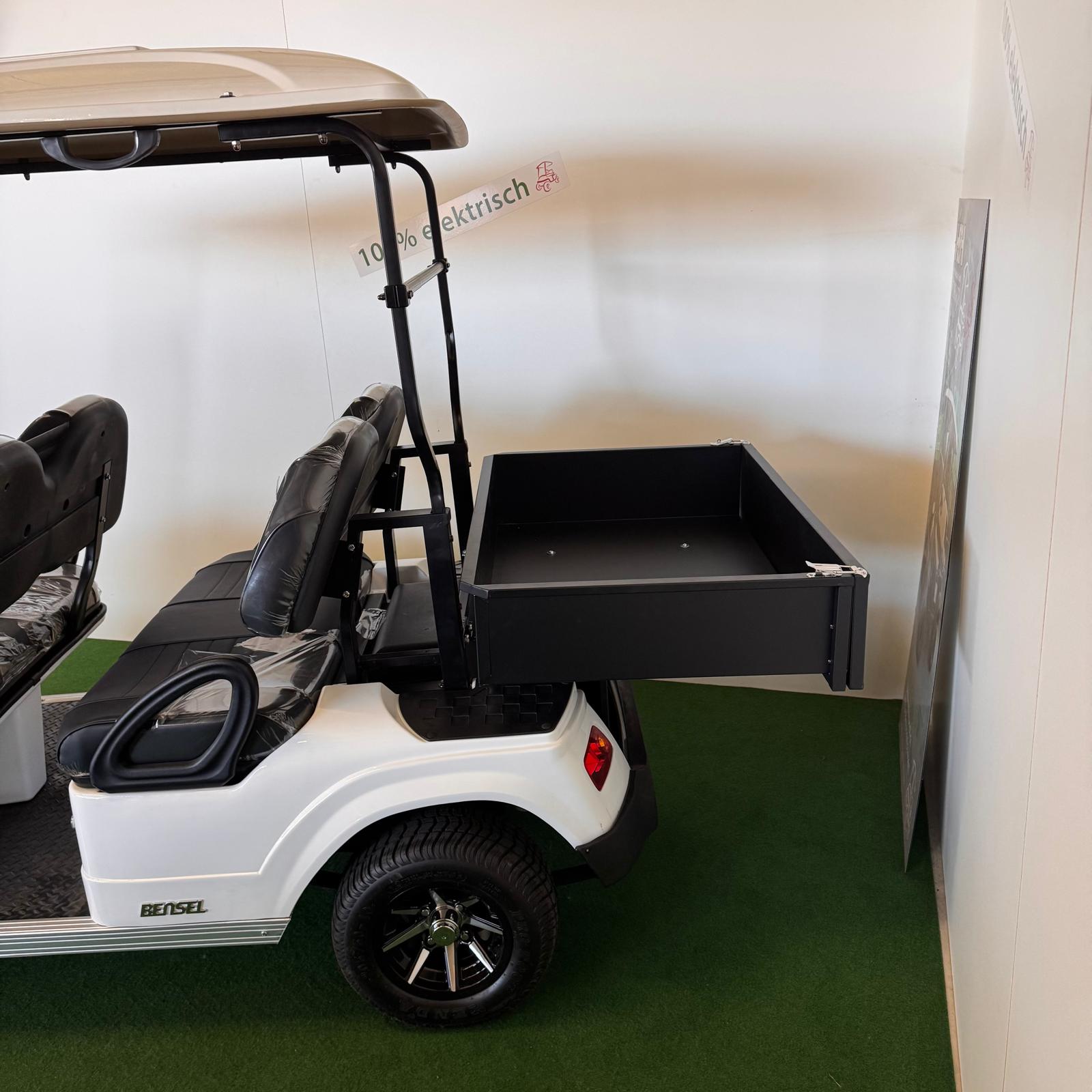 Sofort verfügbar, Farbe schwarz, 6x 8V Trojan Batterien, Ladegerät, kunststoff Ladefläche 1100x760x260mm, LED Lichtanlage vorne und hinten, 10 Zoll Alufelgen in schwarz glanz, 3,3 PS Motor, Alu Chassis, viele weitere Optionen möglich.